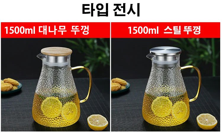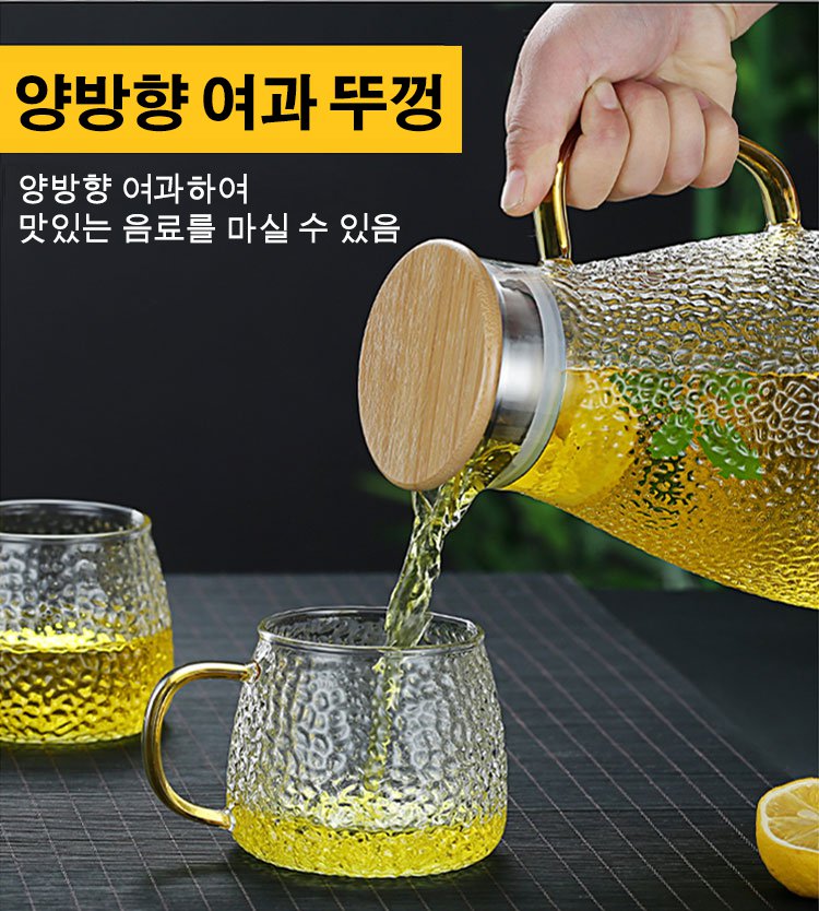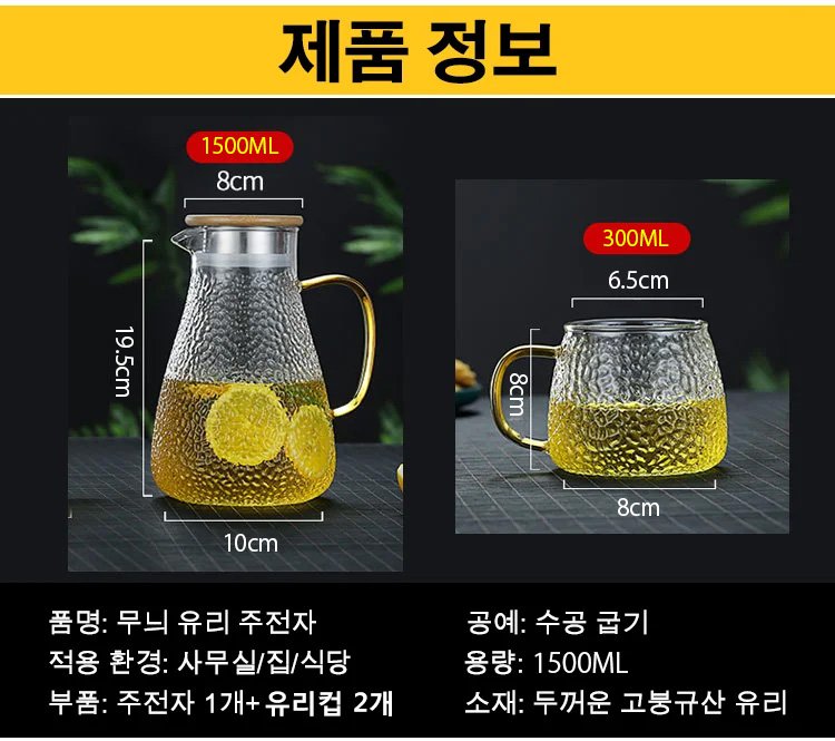 두꺼운 고붕규산 유리, 투명하고 정교하며, 스타일리시한 무늬 디자인, 미끄러움 방지 손잡이, 1.5L 대용량~ 추가 구매시 ₩28,000